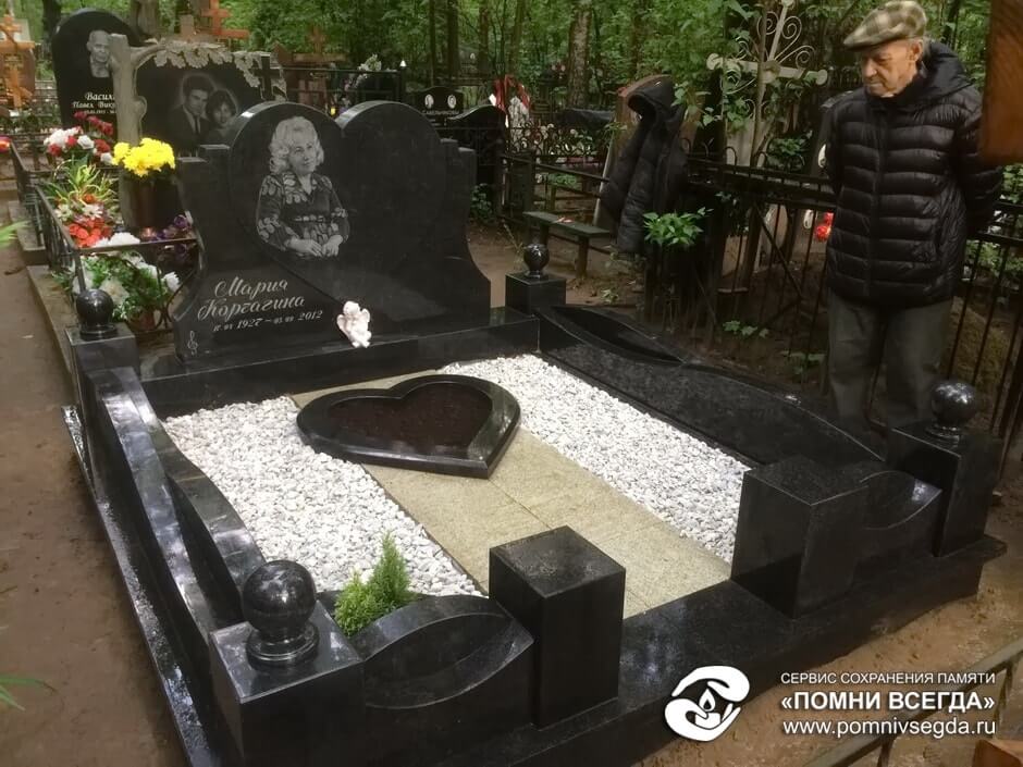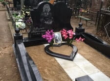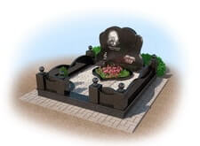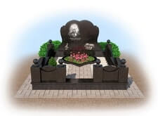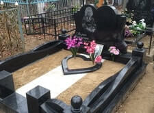 Мемориальный комплекс из черного гранита с цветником в виде сердца